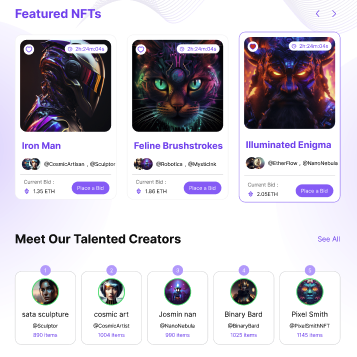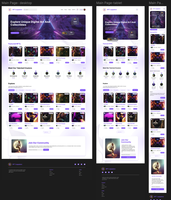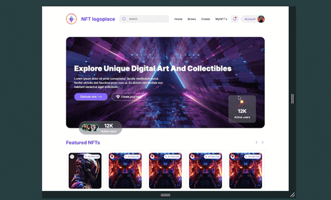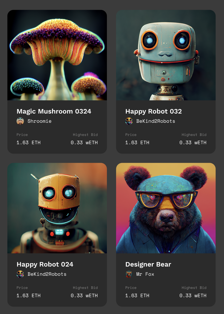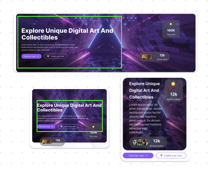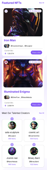 Featured NFTs와 Cretors 의 카드 영역은 모두 grid 레이아웃을 적용했다.